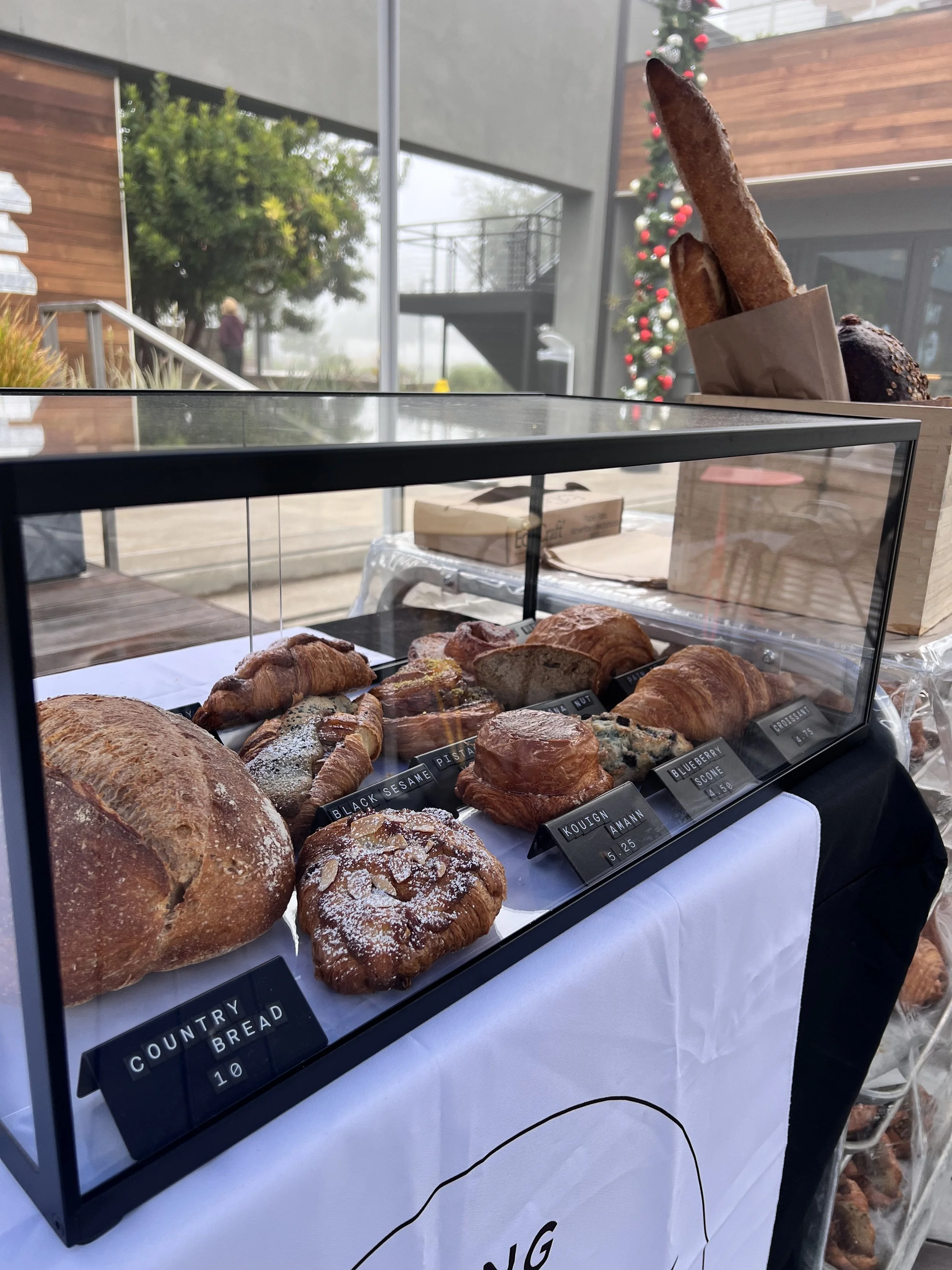 Our catering menu features curated bread and pastry spreads made from our regular bakery offerings. Choose from assorted breakfast pastries, pain au chocolat, kouign-amann, and a selection of our artisan breads. Sweet and savory options can be combined to suit meetings, celebrations, and shared tables.